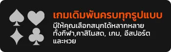 ตอบ : มีบริการครบวงจรทั้งคาสิโนสด สล็อต กีฬา ไฮโล น้ำเต้าปูปลา เกมไพ่ และหวยออนไลน์ พร้อมระบบฝาก-ถอนอัตโนมัติตลอด 24 ชั่วโมง