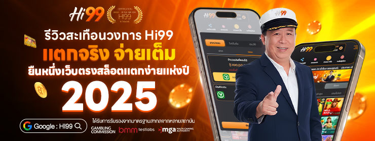 Hi99 - เว็บพนันออนไลน์ครบวงจรที่รวบรวมเกมพนันหลากหลายรูปแบบไว้ในที่เดียว นำเสนอประสบการณ์การเดิมพันทั้งกีฬา คาสิโน สล็อต และเกมยอดนิยมอื่นๆ ด้วยระบบที่ทันสมัย รองรับการใช้งานผ่านทั้งคอมพิวเตอร์และมือถือ พร้อมระบบฝาก-ถอนอัตโนมัติที่รวดเร็วตลอด 24 ชั่วโมง มีทีมงานคอยให้บริการตลอดเวลา ด้วยมาตรฐานความปลอดภัยระดับสากล ทำให้สมาชิกสามารถเพลิดเพลินกับการเดิมพันได้อย่างไร้กังวล เว็บไซต์นี้ได้รับความนิยมจากนักพนันทั่วประเทศ ด้วยโปรโมชั่นที่น่าสนใจและอัตราการจ่ายเงินที่สูง ทำให้เป็นตัวเลือกอันดับต้นๆ สำหรับผู้ที่ต้องการเดิมพันออนไลน์อย่างครบครัน